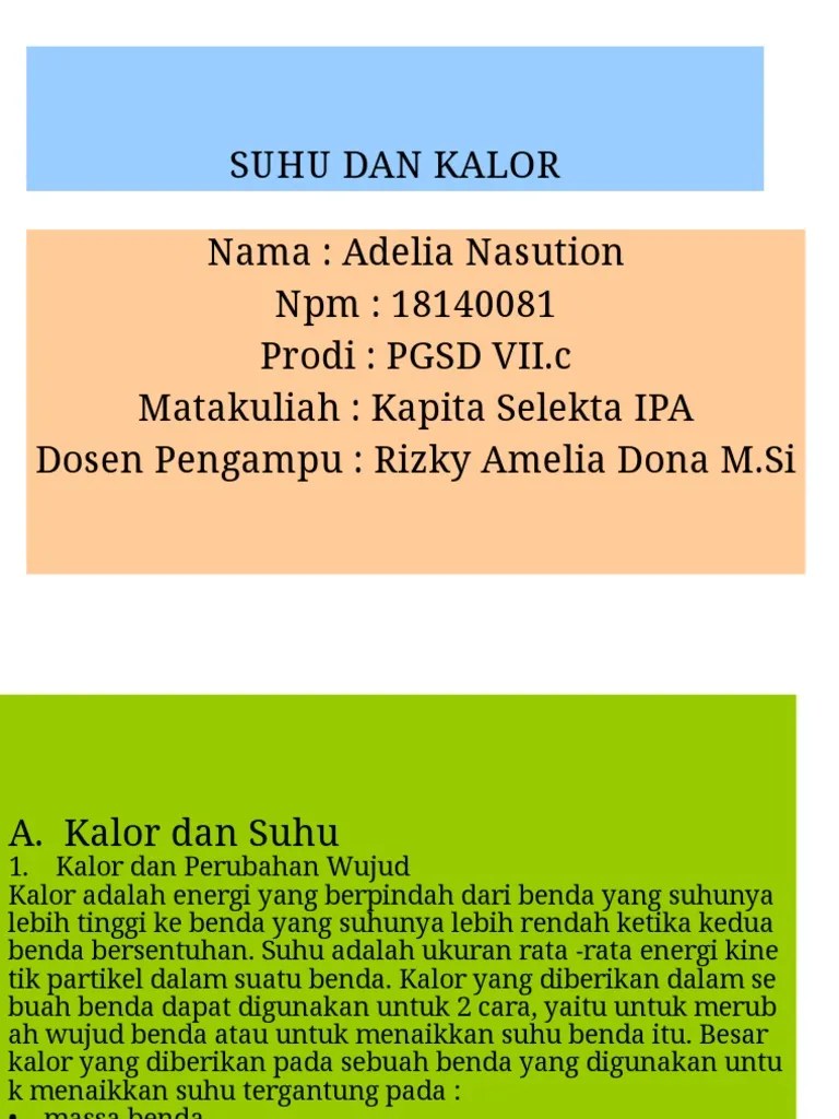 Oct 28 2013 suhu dan kalor ppt kelompok 5 1 suhu dan kalor dosen meiry. Fahrenheit c 0 f 32 r 0 k 273 100 212 80 373 skala suhu tugas diskusi dari perbandingan skala suhu diatas tentukan hubungan persamaan antara ke empat. Ppt kalor dan perpindahannya kelas 7 kurikulum 2013. Download untuk menambah kemampuan dan pengetahuan kamu. Saran dan kritik boleh disampaikan .